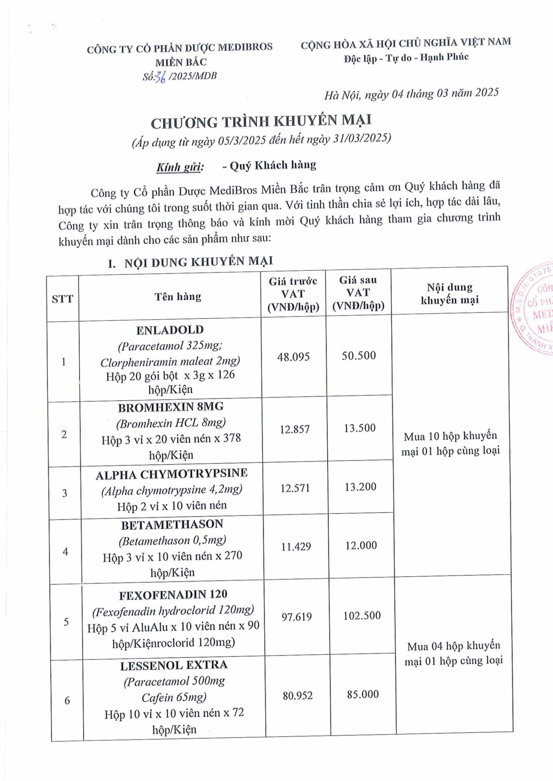 Chương trình khuyến mại các mặt hàng Enlie số 36/2025/MDB
