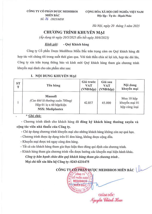 CTKM Massoft số 76/2025/MDB áp dụng từ 20/05/2025 đến 30/06/2025