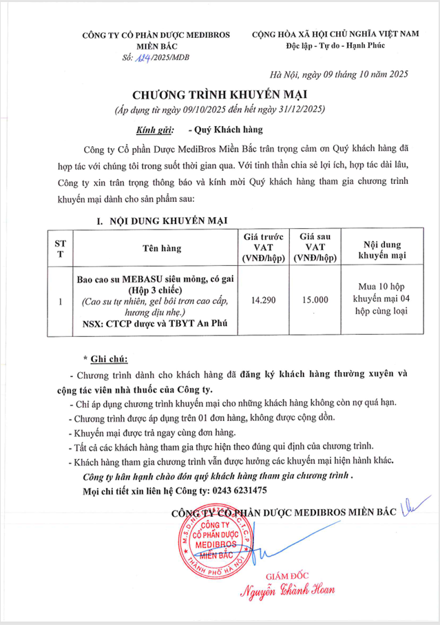 CTKM số 124/2025/MDB Chương trình khuyến mãi áp dụng từ 09/10/2025 đến 31/12/2025